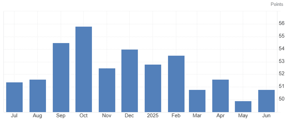 (U.S. ISM Service PMI Chart, Source: Trading Economics)