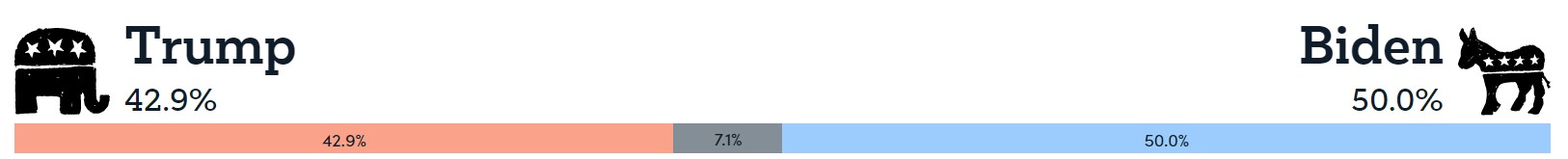 Biden sopravanza Trump del 7,1% nei sondaggi nazionali, in base ai nostri esperti di sondaggi elettorali. Si è parlato molto della sua età e dei suoi strafalcioni verbali, e c’è il rischio che si ritrovi soverchiato dallo stile comunicativo aggressivo di Trump.