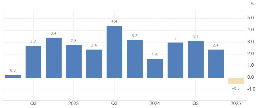 ( U.S. GDP Growth Rate QoQ Advance Chart, Source: Trading Economics)