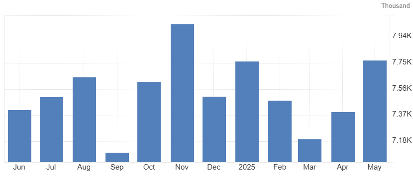 The U.S. JOLTs job openings came in at 7.769 million for May, while the expected figure for June is lower at 7.1 million. This anticipated decline reflects signs of a cooling labour market as the Federal Reserve’s prolonged period of high interest rates continues to weigh on business sentiment and hiring activity. Companies, especially in rate-sensitive sectors such as technology and manufacturing, are becoming more cautious, while slowing consumer demand and broader economic uncertainty are also contributing to a decline in job vacancies. This data is set to be released on 29 July at 1400 GMT.