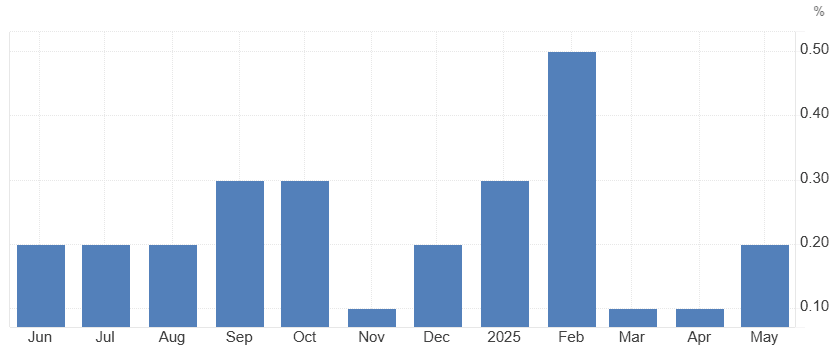 ( U.S. Core PCE Price Index MoM Chart, Source: Trading Economics)