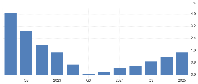 ( Eurozone GDP Growth Rate YoY Flash Chart, Source: Trading Economics)