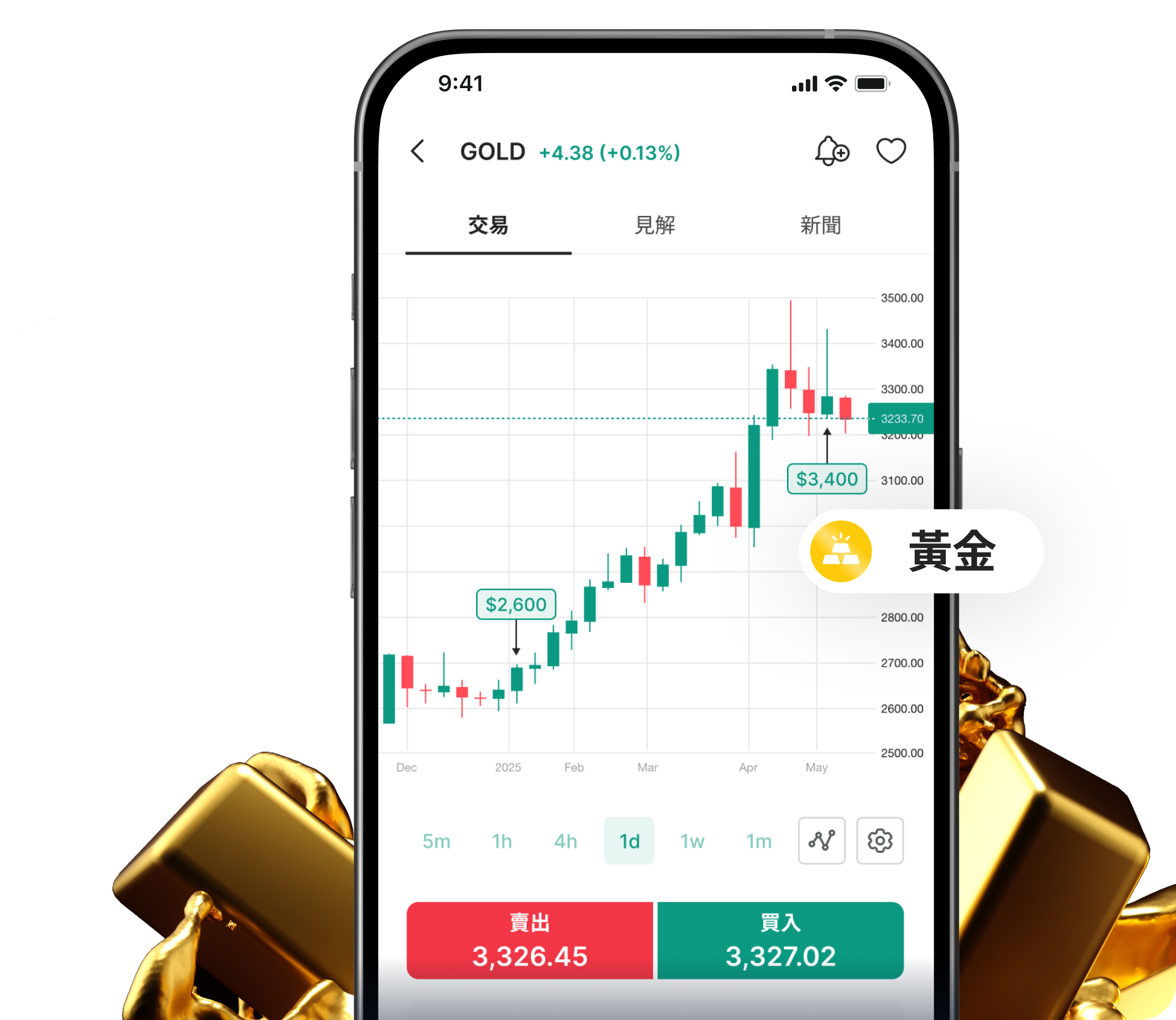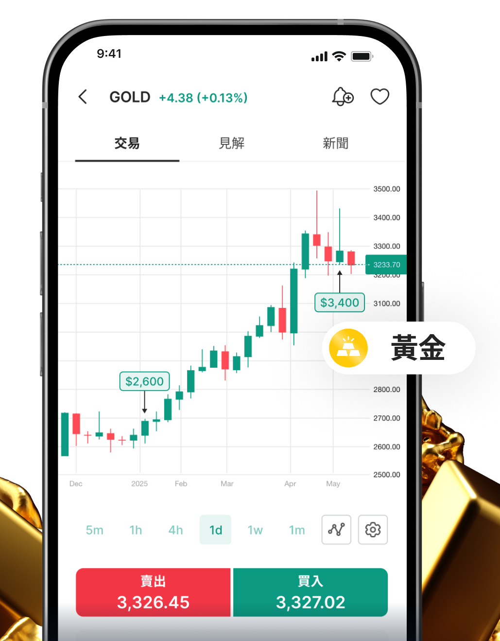 隨時隨地交易黃金CFD,抓住全球市場機會!