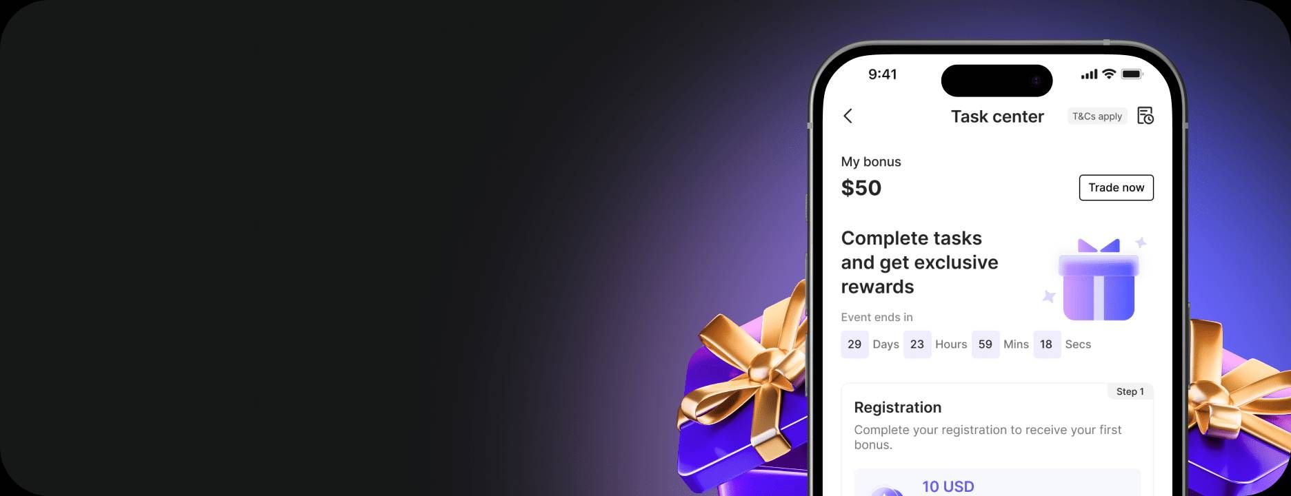 Realice su primera operación y reciba una bonificación de $10 como recompensa por comenzar a realizar operaciones en tiempo real.