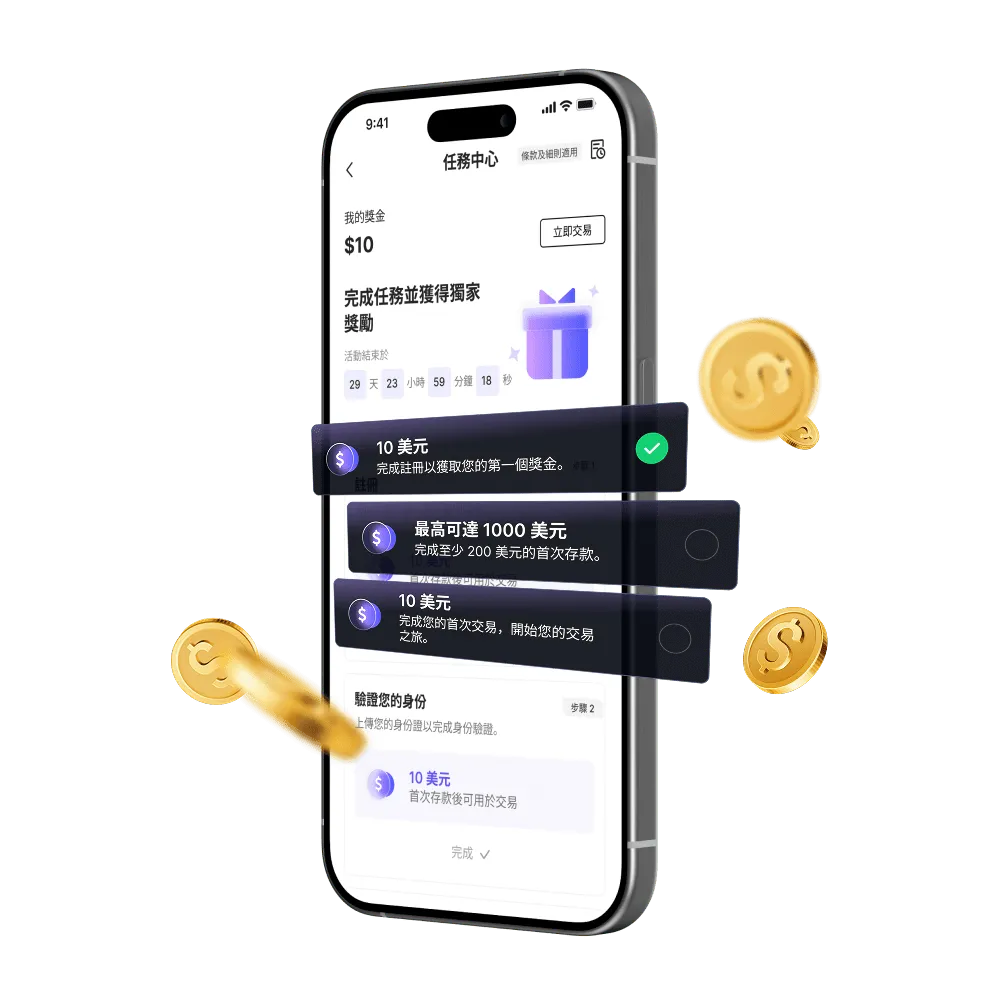 首次交易即賺$10贈金,成為您的交易助力