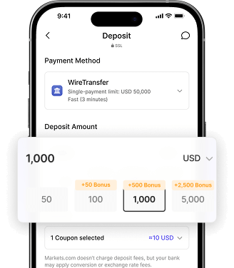 Deposit $1,000 and unlock $500 bonus credit as extra trading capital.