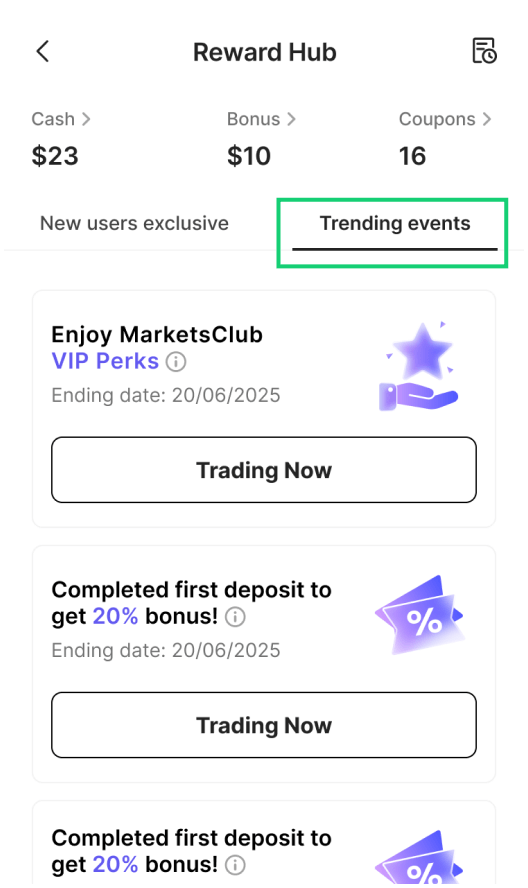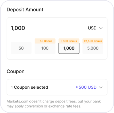 Deposit Coupon Unlocks bonus credit after you deposit, adding extra trading capital.
