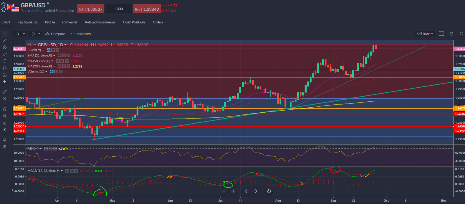 Sterling up to highest level vs. USD since March 2022 on Fed/BoE divergence