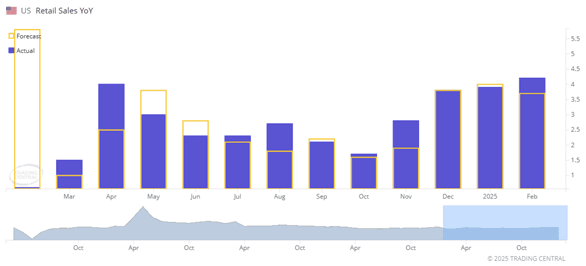 (U.S. Retail Sales YoY Chart, Source: Trading Central)