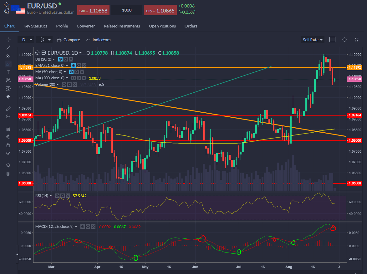 EURUSD cracked at the 1.110 support yesterday morning on the German data and is sticking below this level now.