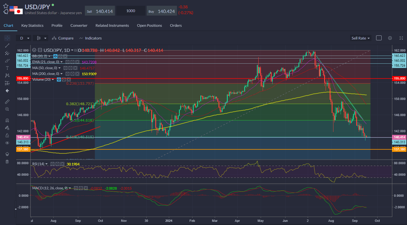 And still on the yen, USDJPY seems to have found some stability around the 140 handle and 61.8% retracement for the time being.