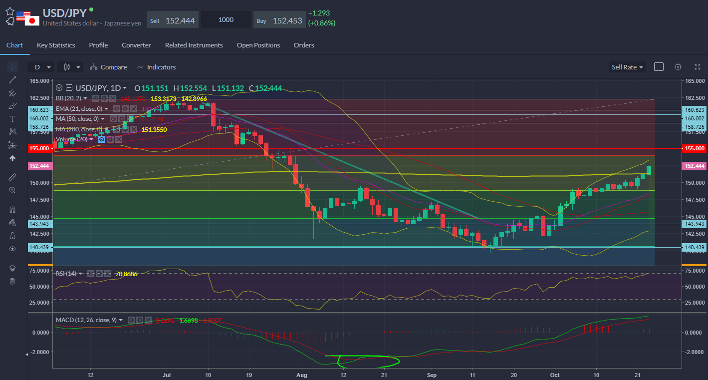 USDJPY – USD strength has pushed against an open door here and broken above the 200-day SMA above 152 this morning
