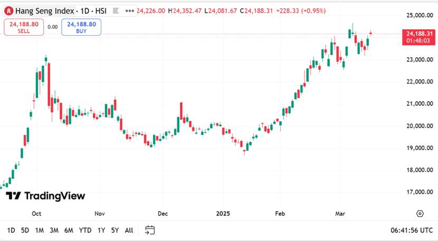 Stock market index update: the Hang Seng Index (HSI) opened on a positive note this Monday, recording an increase of 266 points, or 1.11%, to close at 24,226.