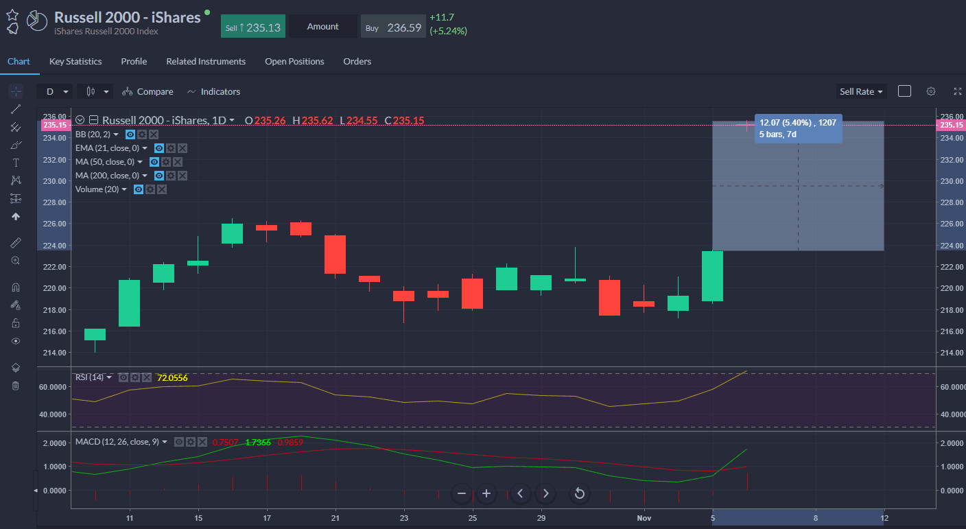 Some very large moves at the open in the US as the Trump Trade really takes off – SPX up 2% for a fresh intraday record high and the Russell 2k gapping up a whopping 5% at the open, with the Dow Jones up more than 1300pts, or 3%, for a new record high.
