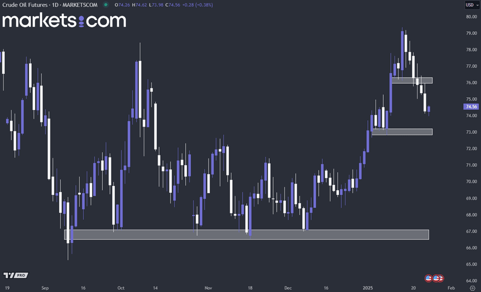 (Crude Oil Futures Daily Price Chart, Source: Markets.com)