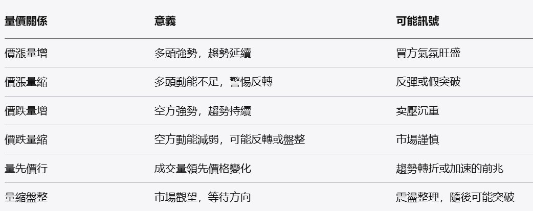 量價關繫屬於一種技術分析,顧名思義就是價格與成交量之間的互動關繫。成交量反映了市場中買賣雙方的交易活動和意願,價格則是供需力量的直接體現。通過觀察成交量的變化,投資者可以判斷市場參與者的行爲,並結合價格波動預測未來的市場趨勢。成交量是價格變化背後的推動力。價格上漲或下跌本身可能並不能完全反映市場情緒,而成交量卻能揭示出市場背後的力量。
