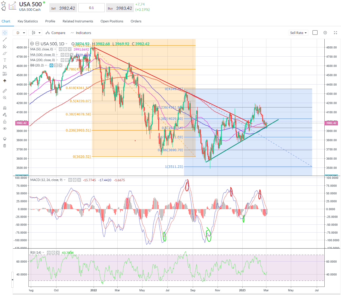 The S&P 500 bounced smartly from its 200-day SMA and 50% retracement zone on the near-term rising trendline to close three-quarters of a percent higher. The Dow rose more than 1% as Salesforce shares jumped on earnings beating expectations.