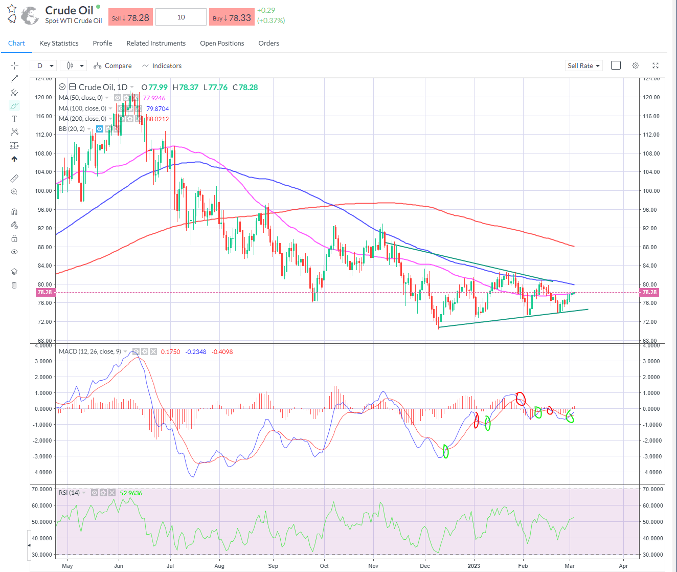 Oil firmer this week, back above its 50-day SMA, but the chop sideways continues