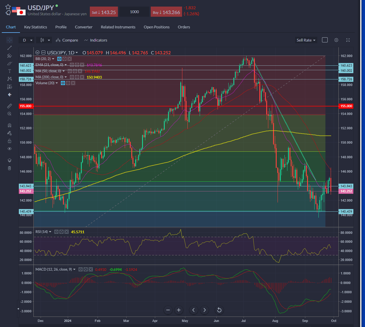 USDJPY retreated sharply from the 50-day SMA and now sits above this week’s obstinate support at 143.0.