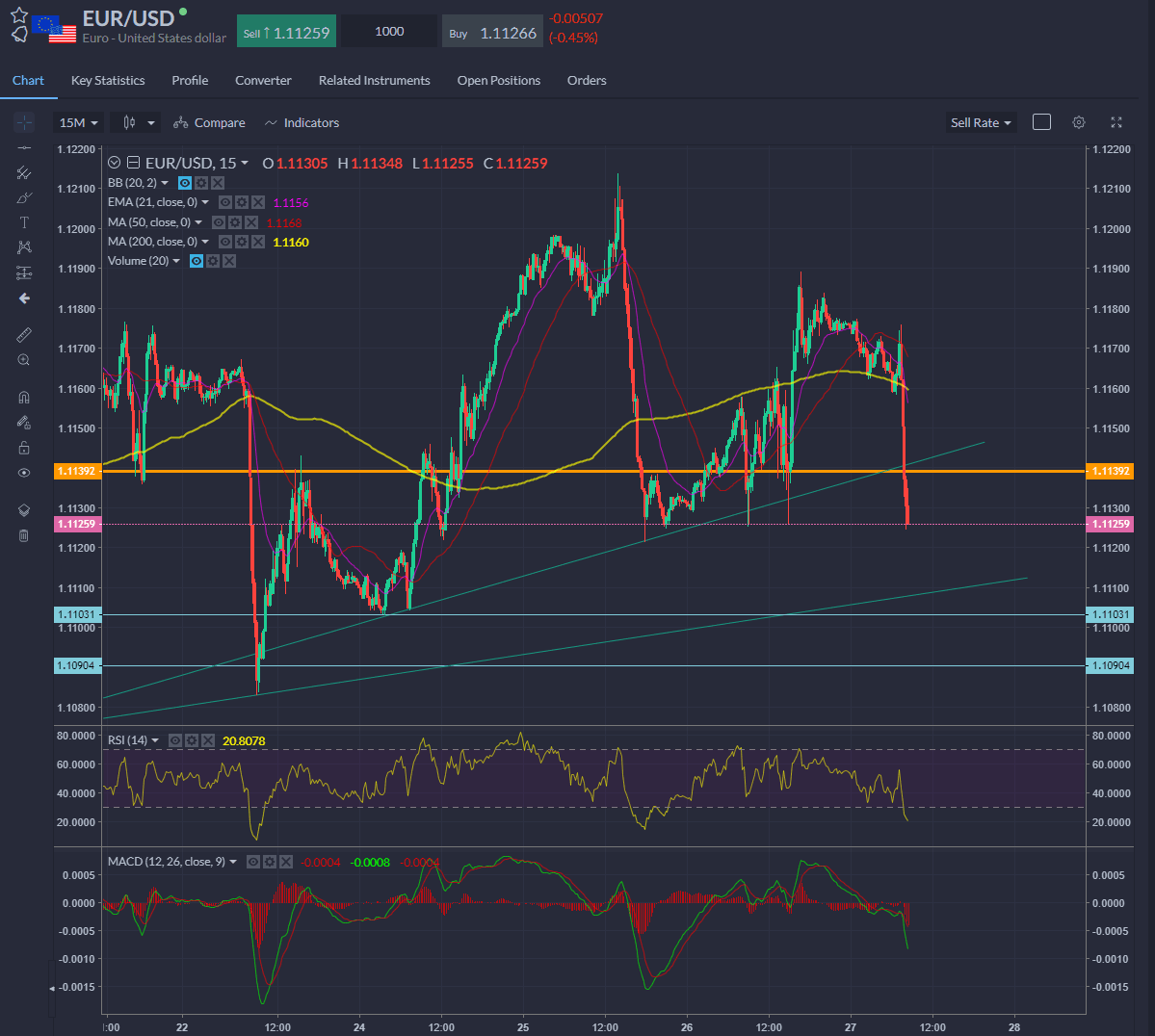 EURUSD made a clear move down on the data and looks to test recent support around 1.110.